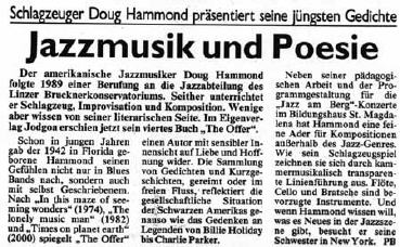 Arikel aus der Zeitung "Oberösterreich Krone" März -