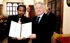 Landeshauptmann Pühringer with Doug Hammond - Landeskulturpreis für Kunst im Interkulturellen Dialog
