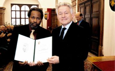 Landeshauptmann Pühringer with Doug Hammond - Landeskulturpreis für Kunst im Interkulturellen Dialog